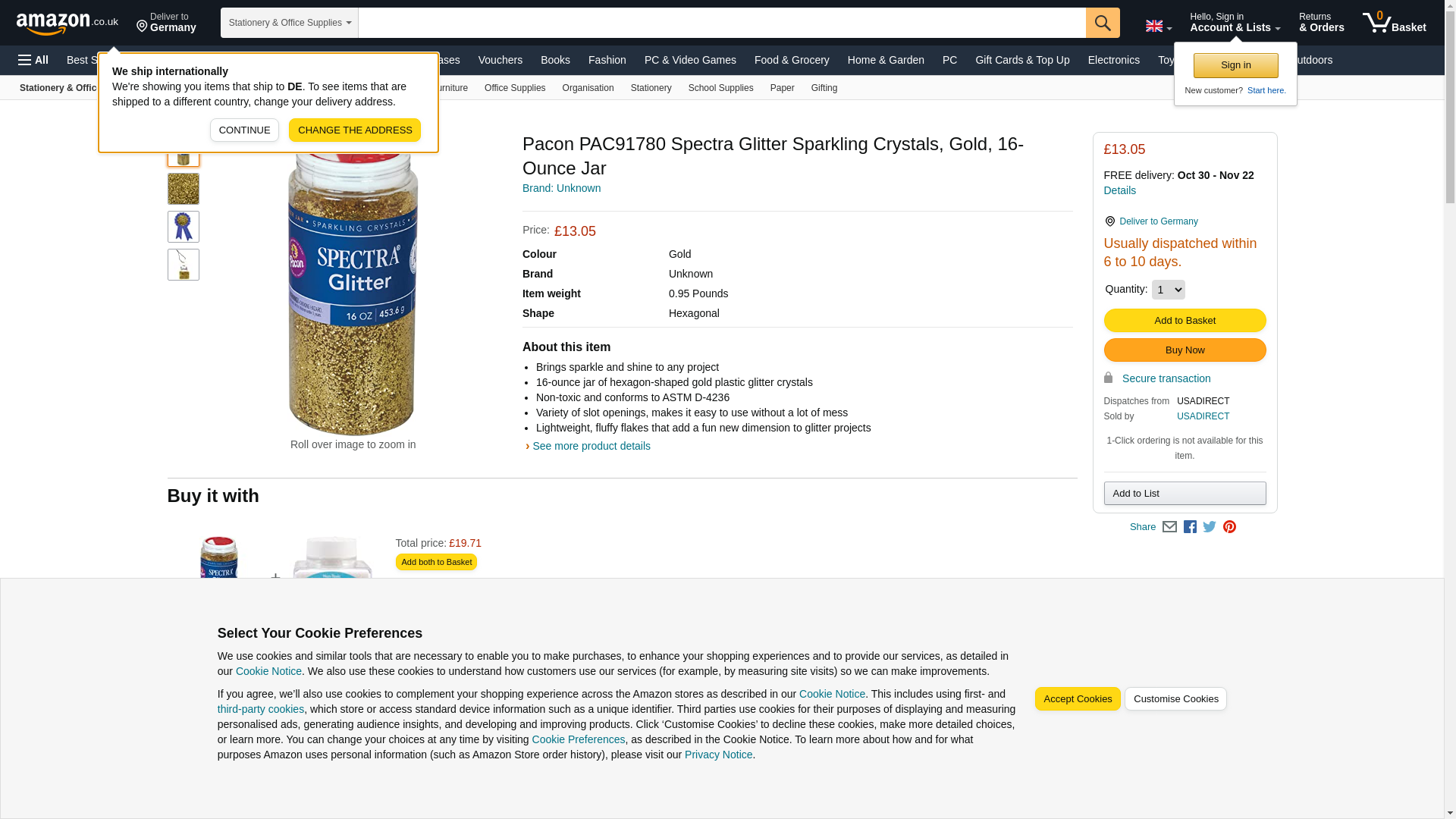 Spectra Arts & Crafts Glitter, Gold, 16 oz., 1 Jar