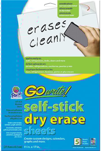 These sheets make an easy and convenient way to create a dry-erase board anywhere. Stick to the wall, door, table, desk or fridge. Ideal for meetings, to-do lists, classroom, activities and much more. Each sheet has a full decal. Leaves no residue behind and erases cleanly. Recyclable.<br/>11" x 17" 5Â sheets