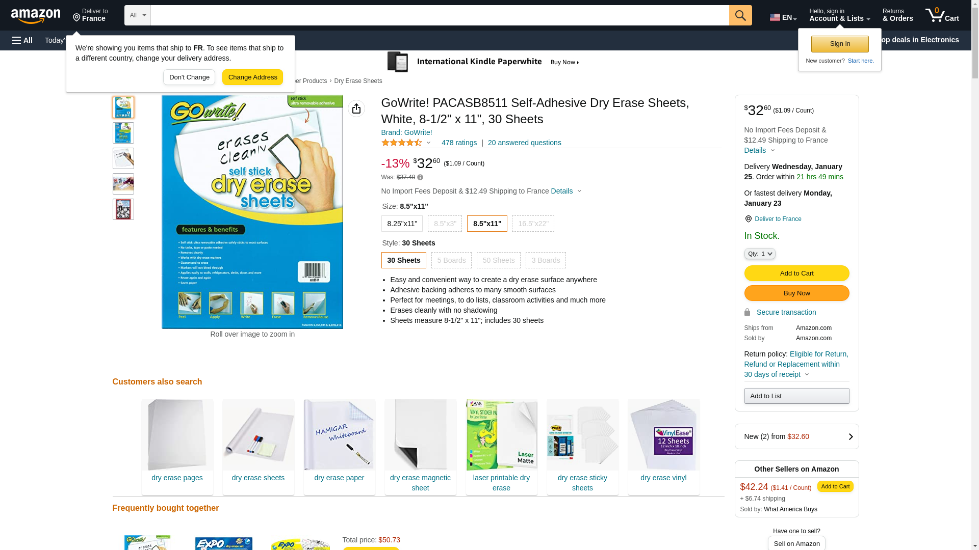 GoWrite! PACASB8511 Self-Adhesive Dry Erase Sheets, White, 8-1/2" x 11", 30 Sheets