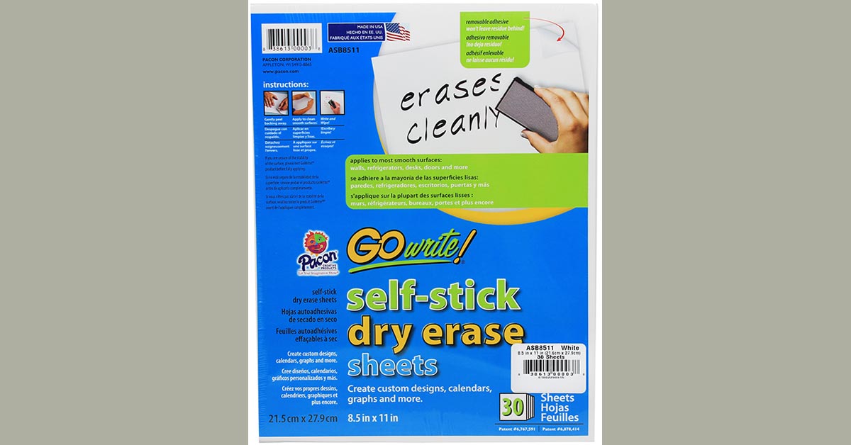 Pacon Go Write Dry Erase Sheets 30PK 8 1/2 X 11 Plain, Melamine, Self Stick (PACASB8511) | Quill.com