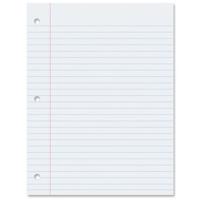 Quality filler paper is great for all your home and office needs. Smooth white surface is well-suited to note-taking and compositions. Paper is ruled with 3/8" spacing and a red margin on both sides. It is 3-hole punched so you can easily store in standard three-ring binders and remove when necessary.