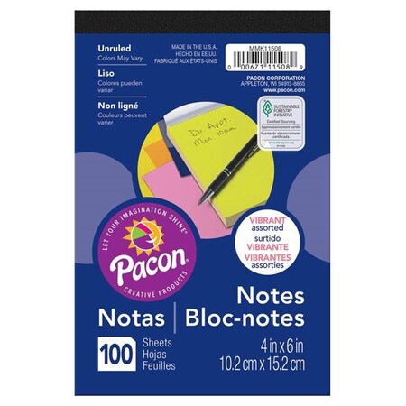 Pacon PACMMK11508 Note Pad, 4" x 6", Fluorescent Colors, 100 Sheets