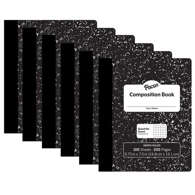 Pacon® Composition Book, 9.75" x 7.5", 1/5" Quadrille Ruled, 100 Sheets, Black Marble, Pack of 6 (PA | Quill.com