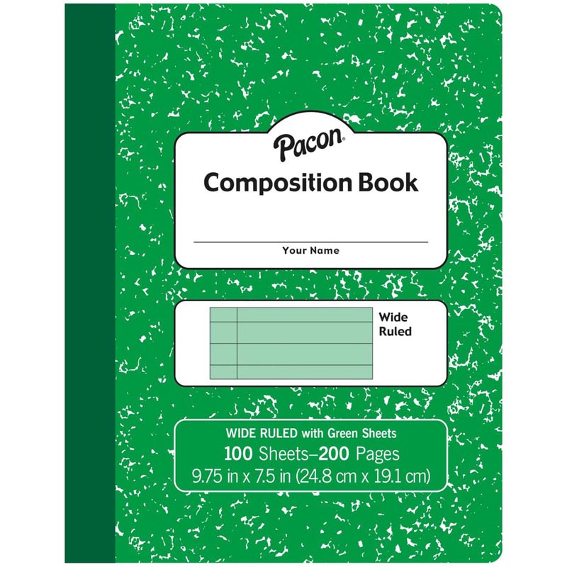 TeachersParadise - Pacon? Pastel Composition Book, Green Marble Cover, Light Green Sheets, 3/8" Ruled, 9-3/4" x 7-1/2", 100 Sheets - PACMMK37172
