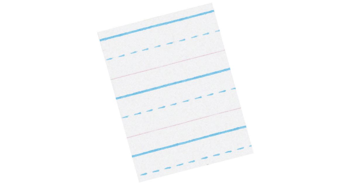 Clean white sulphite paper is printed with a red baseline and a broken blue midline to make it easy for students to find the headline quickly and easily. Recyclable paper is printed on both sides.