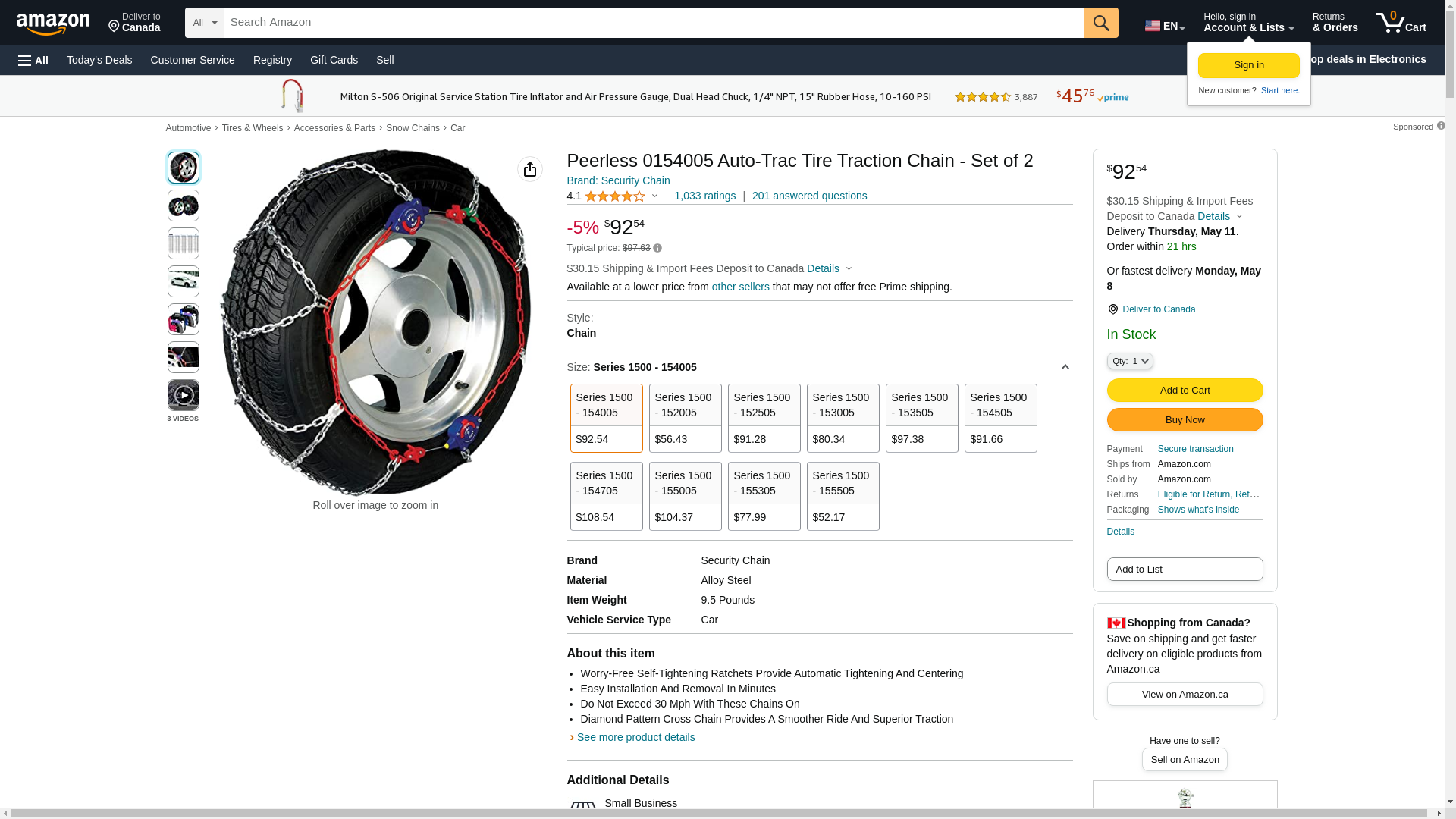 Peerless 0154005 Auto-Trac Tire Traction Chain - Set of 2