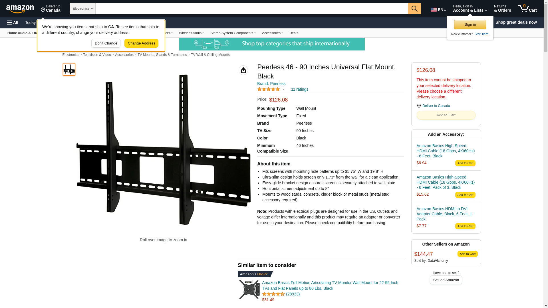 Peerless 46 - 90 Inches Universal Flat Mount, Black