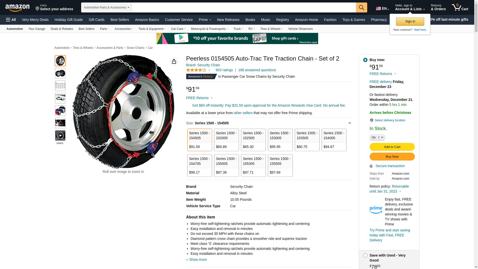 Peerless 0154505 Auto-Trac Tire Traction Chain - Set of 2