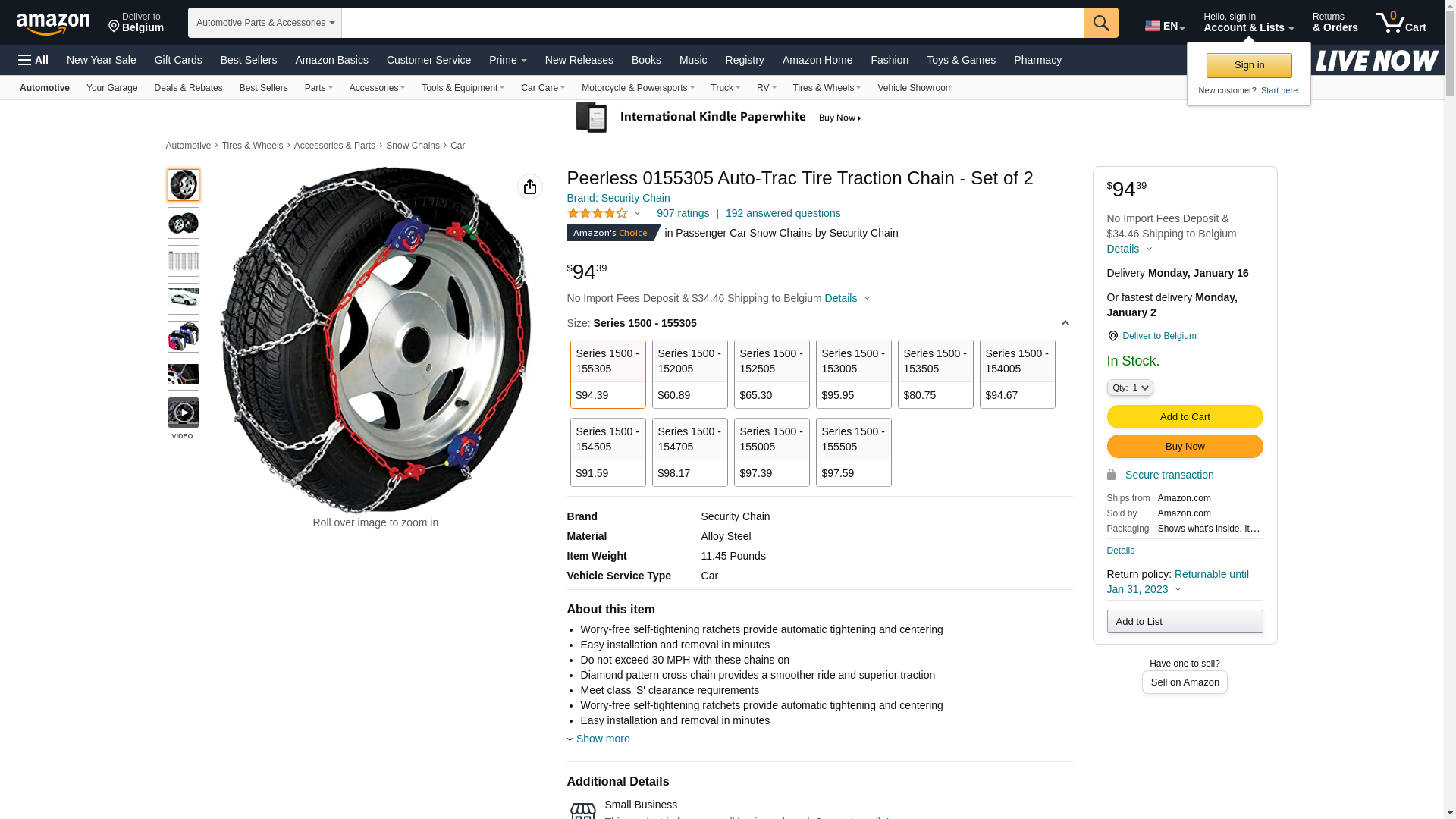 Peerless 0155305 Auto-Trac Tire Traction Chain - Set of 2