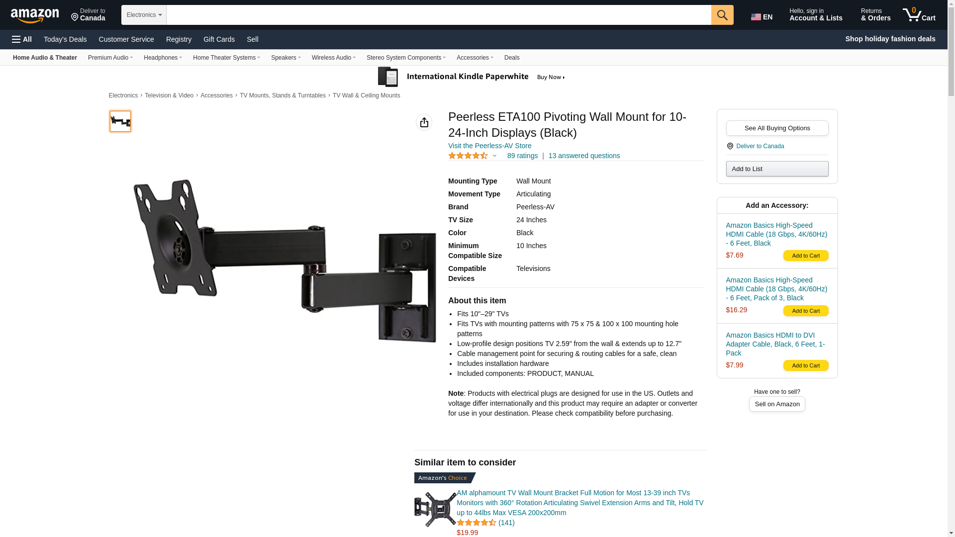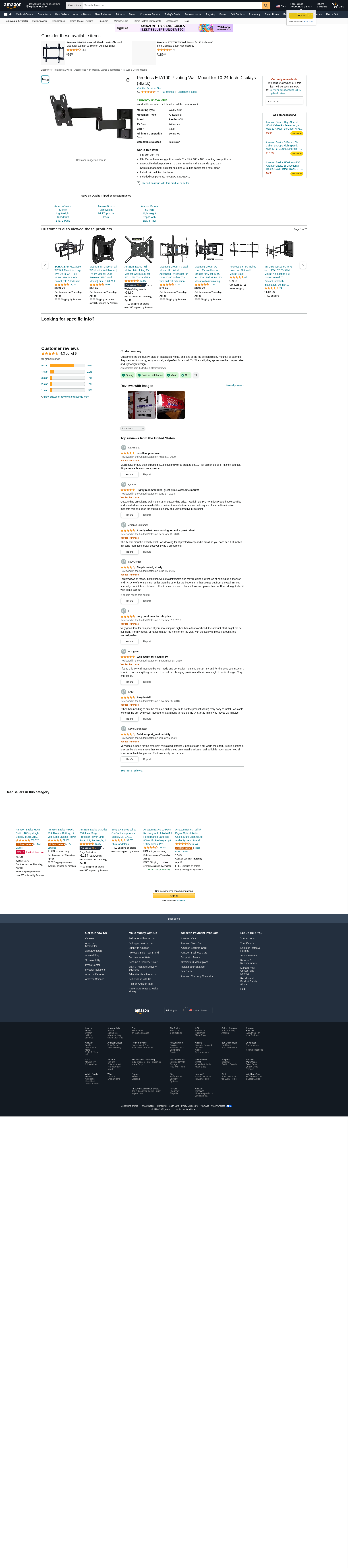 Peerless ETA100 Pivoting Wall Mount for 10-24-Inch Displays (Black)