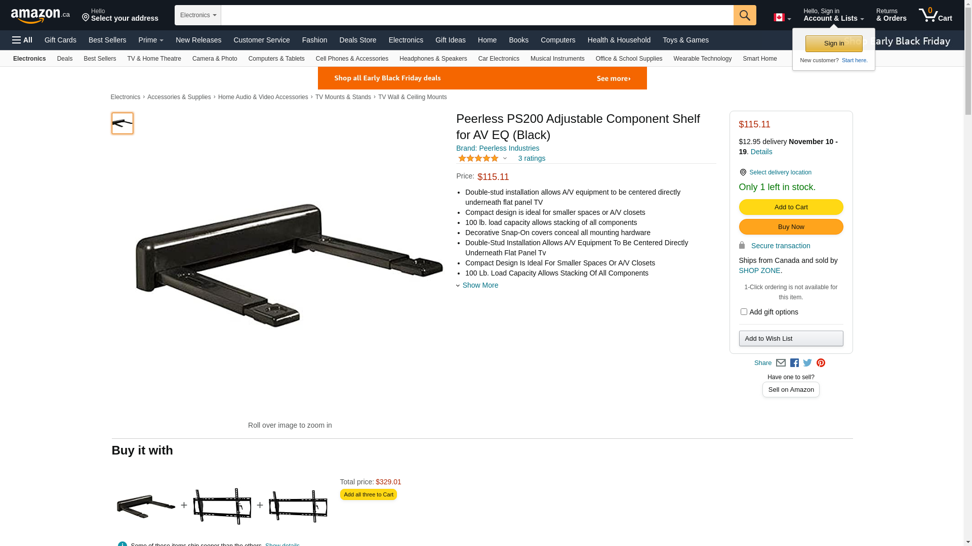 Here is some additional information about Peerless Component Shelf. Color:Black.