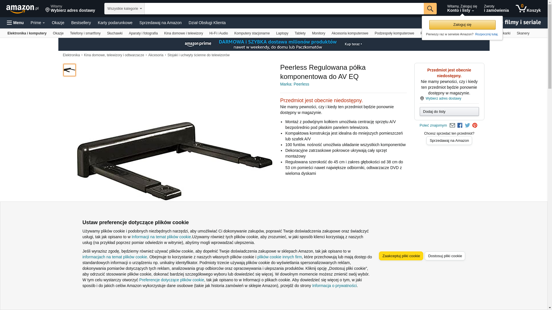 PEERLESS INDUSTRIES ADJUSTABLEPONENT SHELF FOR A/V EQUIPMENT<br/>ADJUSTABLEPONENT SHELF FOR A/V EQUIPMENT<br/><br/><br/> Manufacturer : PEERLESS INDUSTRIES<br/> UPC : 735029253402