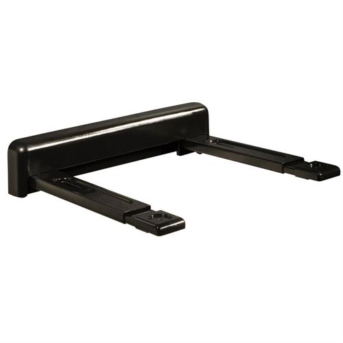 DOUBLE-STUD SHELF SPANS 2 WOOD STUDS ON 16" CENTERS TO CENTRALIZE A/V UNDER FLAT PANEL<br> COMPACT DESIGN IDEAL FOR SMALLER SPACES OR A/V CLOSETS<br> DECORATIVE SNAP-ON COVERS CONCEAL ALL MOUNTING HARDWARE<br> ADJUSTABLE WIDTH UP TO 18" & DEPTH RANGE OF 15"?22" ACCOMMODATE LARGE<br>RECEIVERS & MULTI-DISK DVD PLAYERS<br> LEVELING FEATURE ENSURES EQUIPMENT IS ALWAYS LEVEL<br> 100-LB LOAD CAPACITY<br> INCLUDES MOUNTING HARDWARE FOR WOOD STUDS<br> BLACK