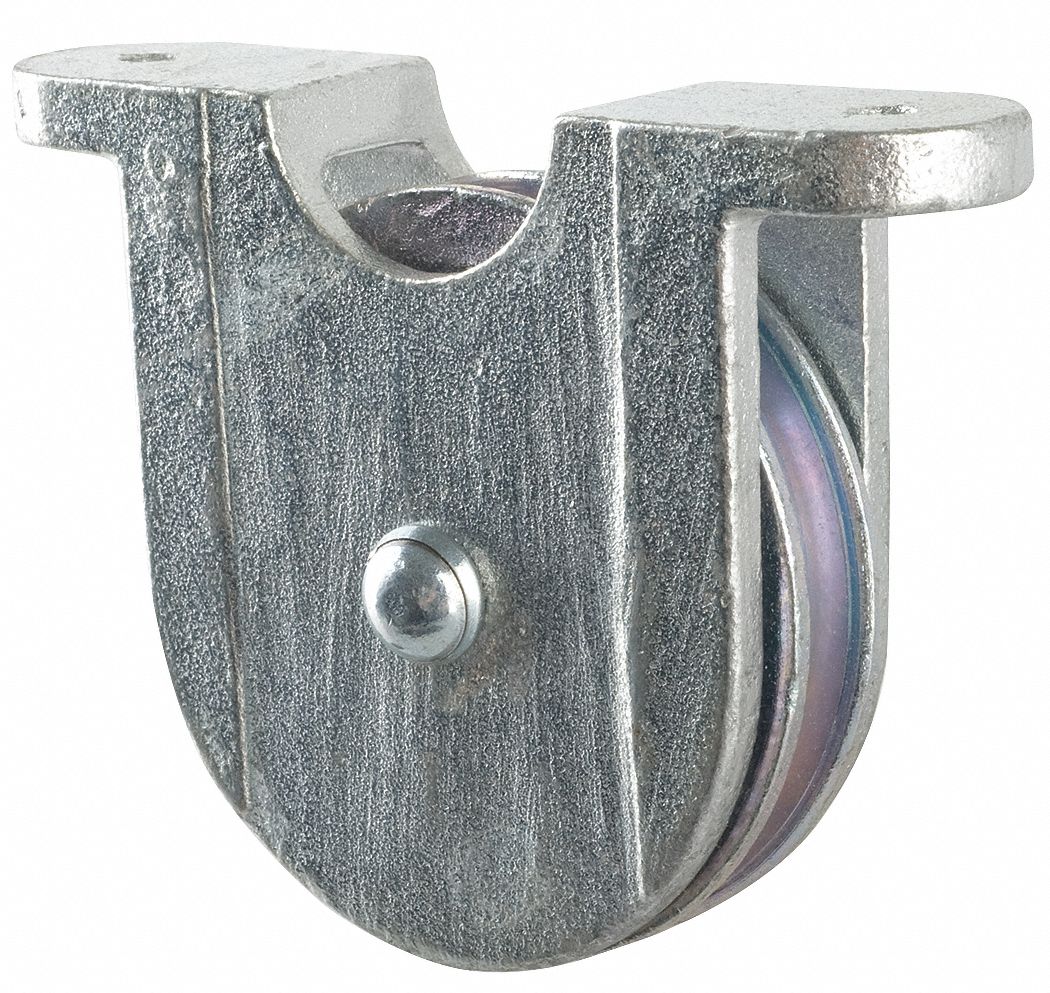 Cheek Block, Designed For Wire Rope, Attachment Type Bolt On, Max. Cable Size 3/8 in, Sheave Outside Dia. 3 in, Sheave Inside Dia. 2 7/32 in, Sheave Width 19/32 in, Bearing Type Plain, Mounting Hole Dia. 7/32 in, Sheave Material Steel, Length 4 25/32 in, Width 1 5/32 in, Depth 1 5/32 in, Finish Electro-Galvanized