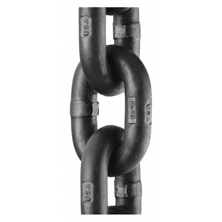 Chain, Welding Type Welded, For Lifting Yes, Chain Link Style Straight, Grade 80, Trade Size 3/8 in, Length 5 ft, Working Load Limit 7,100 lb, Finish Black Thermadep, Material Alloy Steel, Links per Foot 10, Standards NACM/ASTM A391