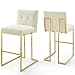 Modway Privy Gold Stainless Steel Performance Velvet Bar Stool Set of 2 in Gold Ivory