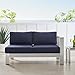 MODWAY EEI-4222-SLV-NAV SHORE 53 INCH SUNBRELLA FABRIC ALUMINUM OUTDOOR PATIO RIGHT-ARM LOVESEAT, SILVER NAVY