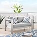 MODWAY EEI-4226-SLV-GRY SHORE 56 1/2 INCH SUNBRELLA FABRIC ALUMINUM OUTDOOR PATIO LOVESEAT, SILVER GRAY