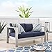 MODWAY EEI-4226-SLV-NAV SHORE 56 1/2 INCH SUNBRELLA FABRIC ALUMINUM OUTDOOR PATIO LOVESEAT, SILVER NAVY
