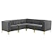 Modway Furniture EEI-4350-GRY Triumph Channel Tufted Performance Velvet Sectional Sofa Grey - 5 Piece