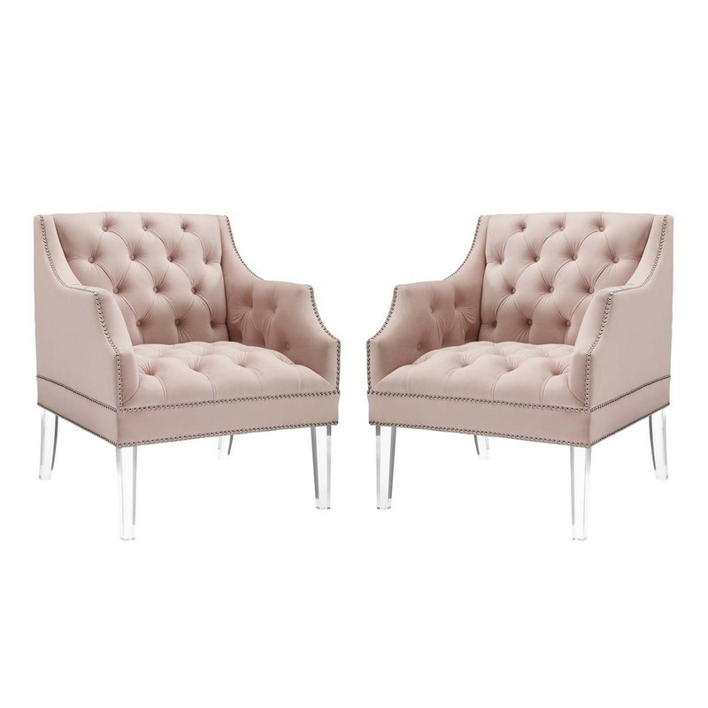 MODWAY EEI-4421-PNK PROVERBIAL 59 INCH ARMCHAIR PERFORMANCE VELVET SET OF 2, PINK