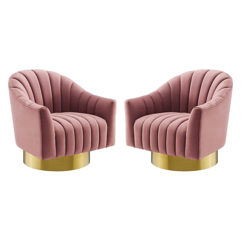 MODWAY EEI-4430-DUS BUOYANT 62 INCH SWIVEL CHAIR PERFORMANCE VELVET SET OF 2, DUSTY ROSE
