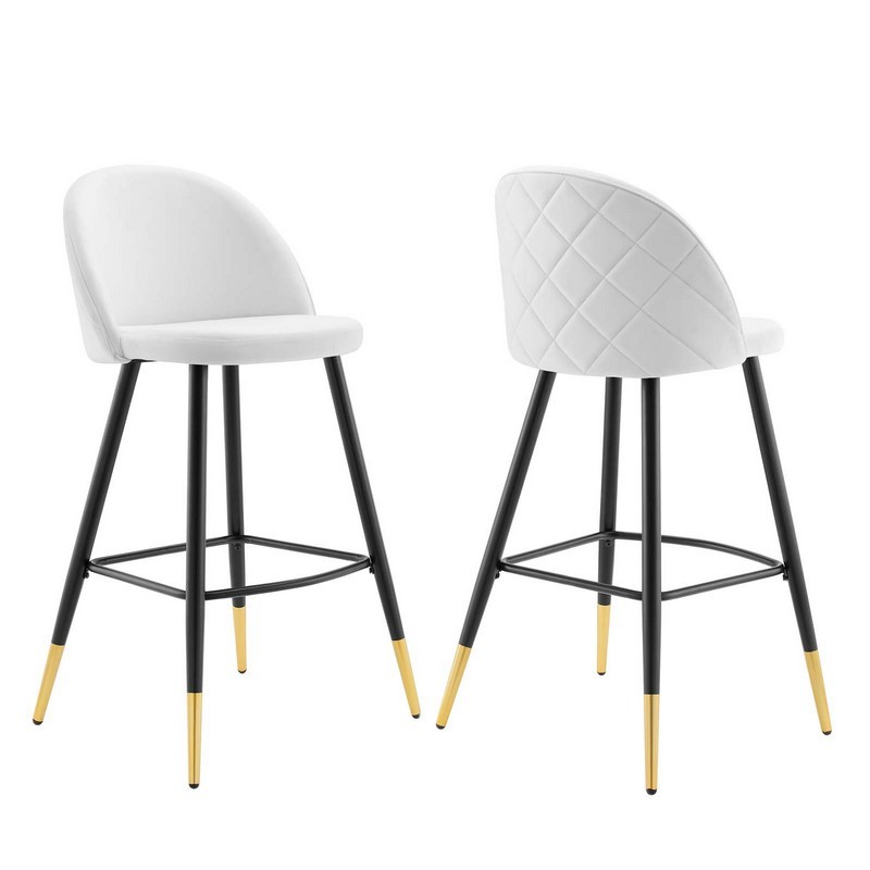Modway Cordial Performance Velvet Dining Bar Stools in White - Set of 2