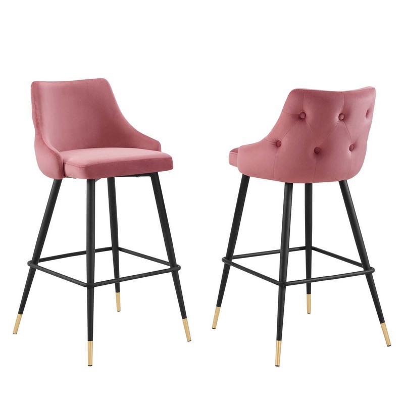 MODWAY EEI-4595-DUS ADORN 39 INCH PERFORMANCE VELVET BAR STOOL SET OF 2, DUSTY ROSE
