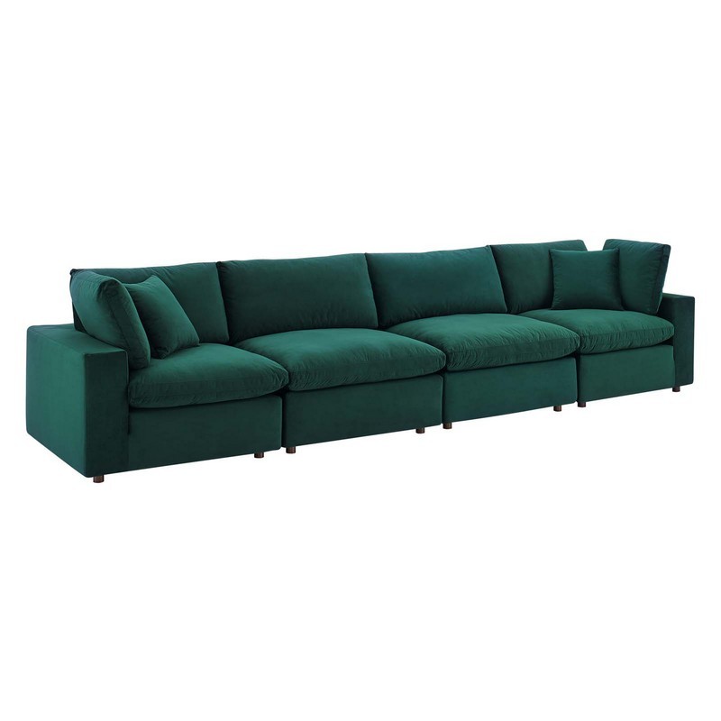 MODWAY EEI-4819-GRN COMMIX 158 INCH DOWN FILLED OVERSTUFFED PERFORMANCE VELVET 4-SEATER SOFA, GREEN