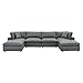 MODWAY EEI-4918-GRY COMMIX 158 INCH DOWN FILLED OVERSTUFFED VEGAN LEATHER 6-PIECE SECTIONAL SOFA, GRAY