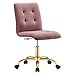 MODWAY EEI-4973-GLD-DUS PRIM 22 1/2 INCH ARMLESS PERFORMANCE VELVET OFFICE CHAIR, GOLD DUSTY ROSE