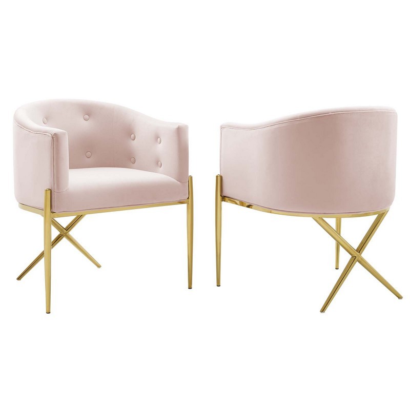 MODWAY EEI-5042-PNK SAVOUR 52 INCH ACCENT DINING ARMCHAIR PERFORMANCE VELVET SET OF 2, PINK