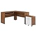 - SPACIOUS STORAGE - Transmit is complete with an upper drawer for storing office essentials and a deep lower drawer for filing system organization. The L-shaped desk features a pull-out keyboard tray