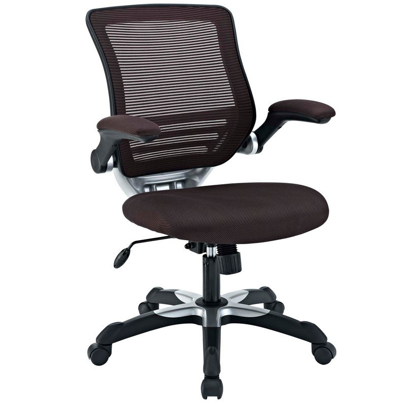 Modway Edge Mesh Back and Mesh Seat Office Chair In Black With Flip-Up Arms in Brown