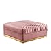 Glamour radiates from the organic linear design of the Sanguine Channel Tufted Performance Velvet Modular Sectional Sofa Ottoman. Relax and follow the channel tufting for a streamlined look that adds retro modern glamour to your living room, lounge, or home office. Soft, stain-resistant performance velvet upholstery creates a luxurious tactile experience while dense foam padding and an individually wrapped spring coil system provide ultimate comfort and support for this sectional sofa piece. Solidly constructed from eucalyptus wood and plywood, this sectional sofa collection is an eye-catching addition. Sanguine's palatial accents and premium comfort rest securely on a gold stainless steel base that complements any contemporary modern home or apartment. Includes non-marking foot pads to protect flooring. Weight Capacity: 330 lbs.<br/><br/>Features :<br/><br/>- Materials: Performance velvet, stainless steel<br/>- Finish: Dusty rose, gold<br/>- Vertical Channel Tufting<br/>- Spring Coil System<br/>- Dense Foam Padding.<br/><br/>Specifications :<br/><br/>- Product Dimensions : 15.5"H x 36.5"W x 36"D<br/>- Product Weight : 42 lbs<br/>- Weight Capacity : 330 lbs.