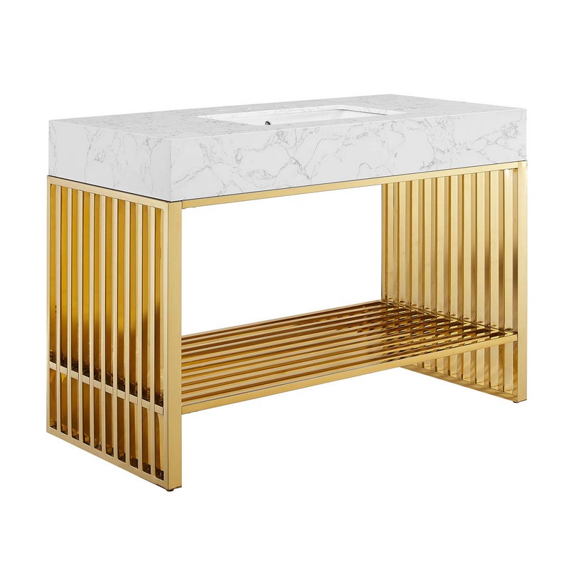 Modway Gridiron 48" Stainless Steel Bathroom Vanity Cabinet, 48 Inch, Gold