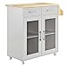 - MODERN AND FUNCTIONAL - The Cuisine Kitchen Cart boasts a beautiful paper laminate design over a particleboard and rubberwood construction, adjustable shelves behind glass-front doors, and two full-glide drawers for ample storage space
