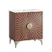 - SUNSHINE BATHROOM VANITY - Energize your bathroom space with the powder-coated brass details, rich wood grain, and sun ray design that radiates from this bathroom vanity cabinet
