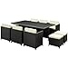 Reversal Collection EEI-644-EXP-WHI-SET 11-Piece Outdoor Patio Dining Set with Synthetic Rattan Weave, Powder Coated Aluminum Frame, Tempered Glass Table Top, Water and UV Resistant Including 4 Stools, 6 Chairs and Rectangular Table in Espresso and White