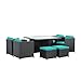Modway Inverse Wicker Rattan 9-Piece Outdoor Patio Dining Furniture Set in Espresso Turquoise