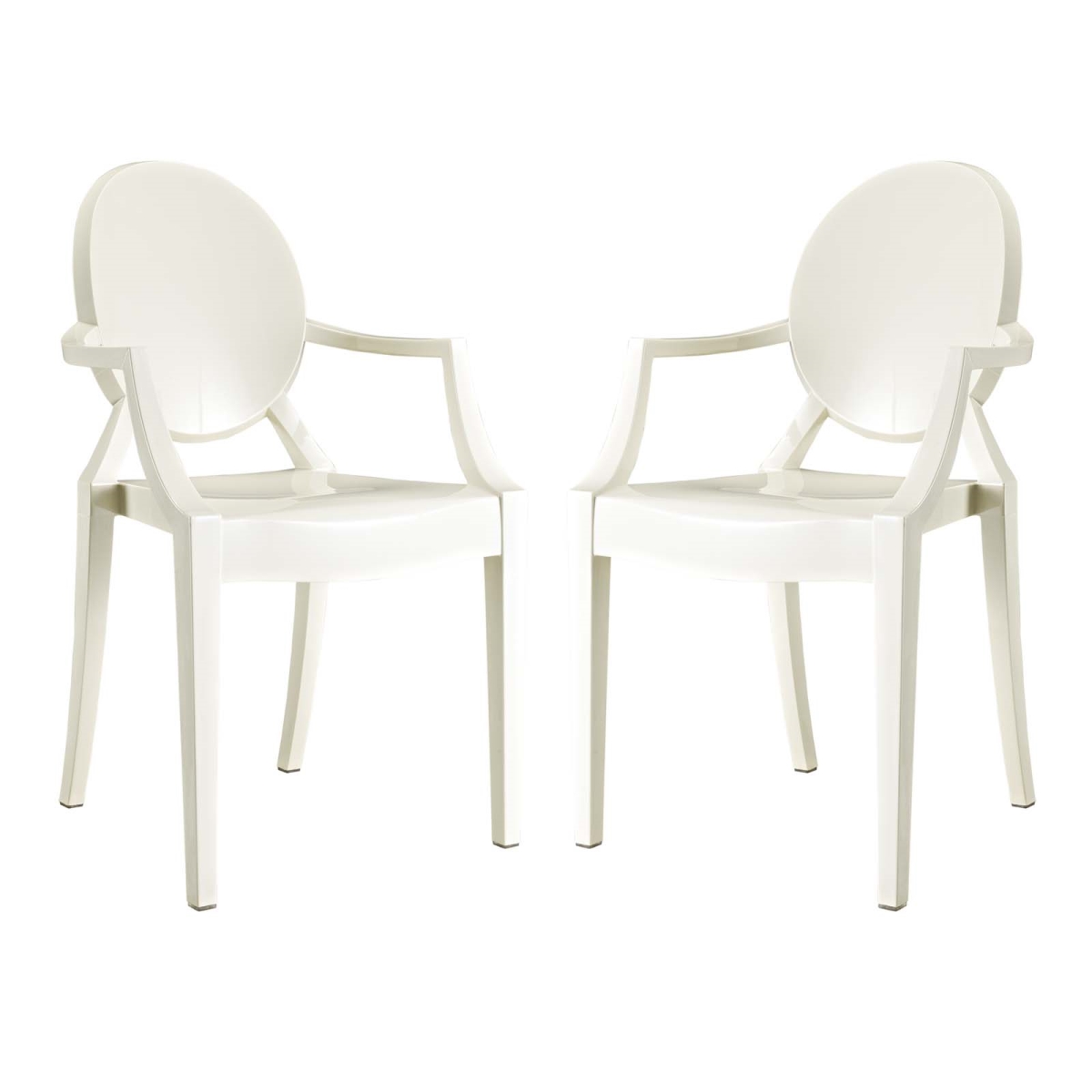 Modway Casper Modern Acrylic Stacking, Two Dining Armchairs, White