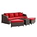 Modway Monterey Wicker Rattan 4-Piece Outdoor Patio Sectional Sofa Furniture Set with Cushions in Brown Red