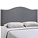 Modway Curl Linen Fabric Upholstered Queen Headboard with Nailhead Trim and Curved Shape in Smoke