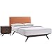 Modway Tracy Mid-Century Modern Wood Platform Queen Size Bed with a Nightstand in Cappuccino Orange