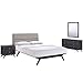 Modway Addison Mid-Century Modern Platform Queen Size Bed and Two Nightstands in Black Beige