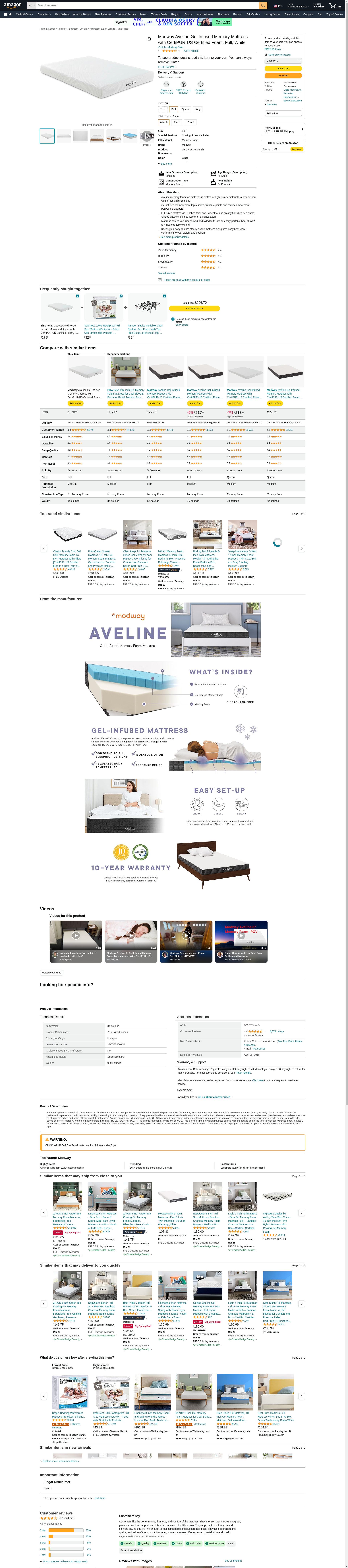 | Feature | BEST REVIEWED MATTRESS - Purchase the top rated firm full mattress at the lowest price. Aveline delivers high quality memory foam comfort and support at a price you can afford. |