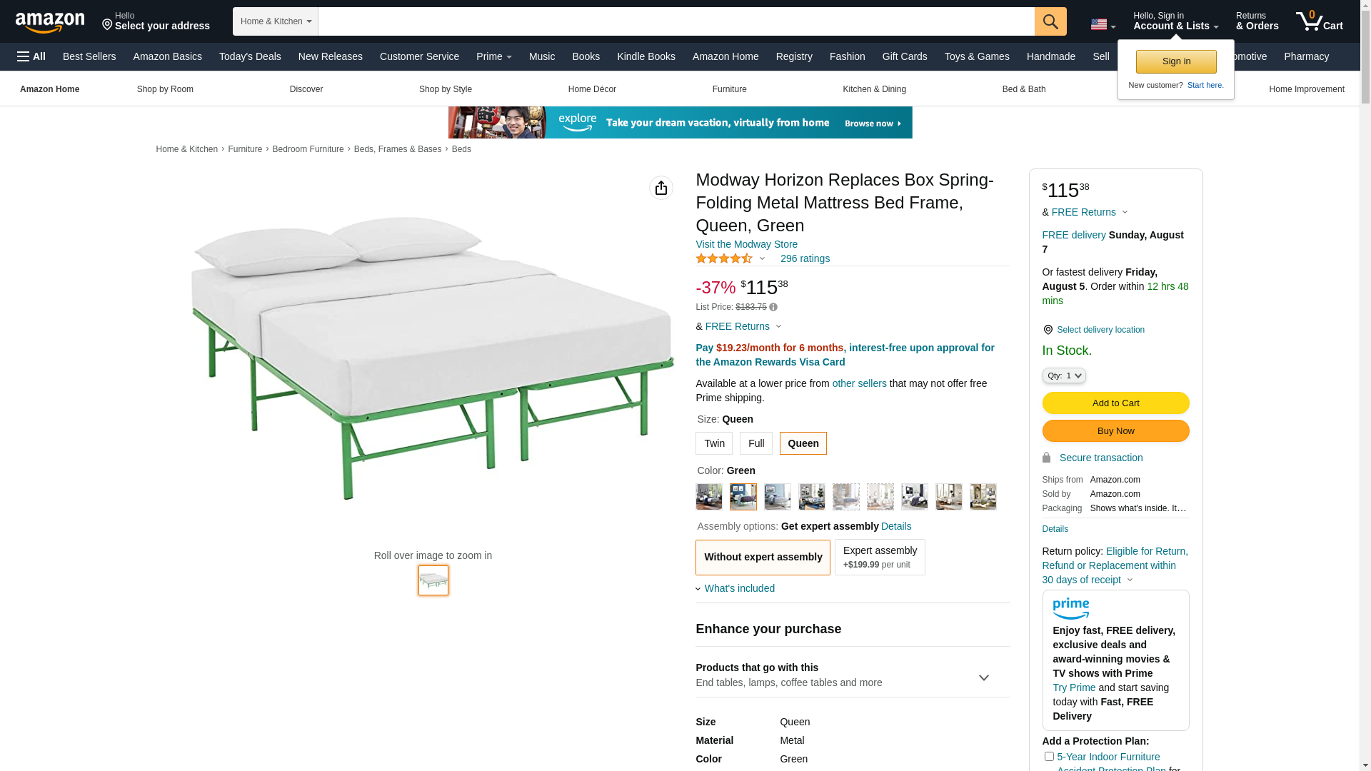 Modway Horizon Replaces Box Spring-Folding Metal Mattress Bed Frame, Queen, Green