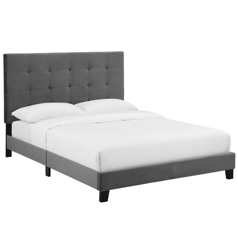 Modway Melanie Performance Velvet Upholstered Tufted King Platform Bed in Gray
