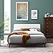 - SLATTED BED FRAME - Combining a reinforced frame with a low-profile headboard, this upholstered platform bed features a sturdy and strong solid wood construction with mid-century inspired splayed legs