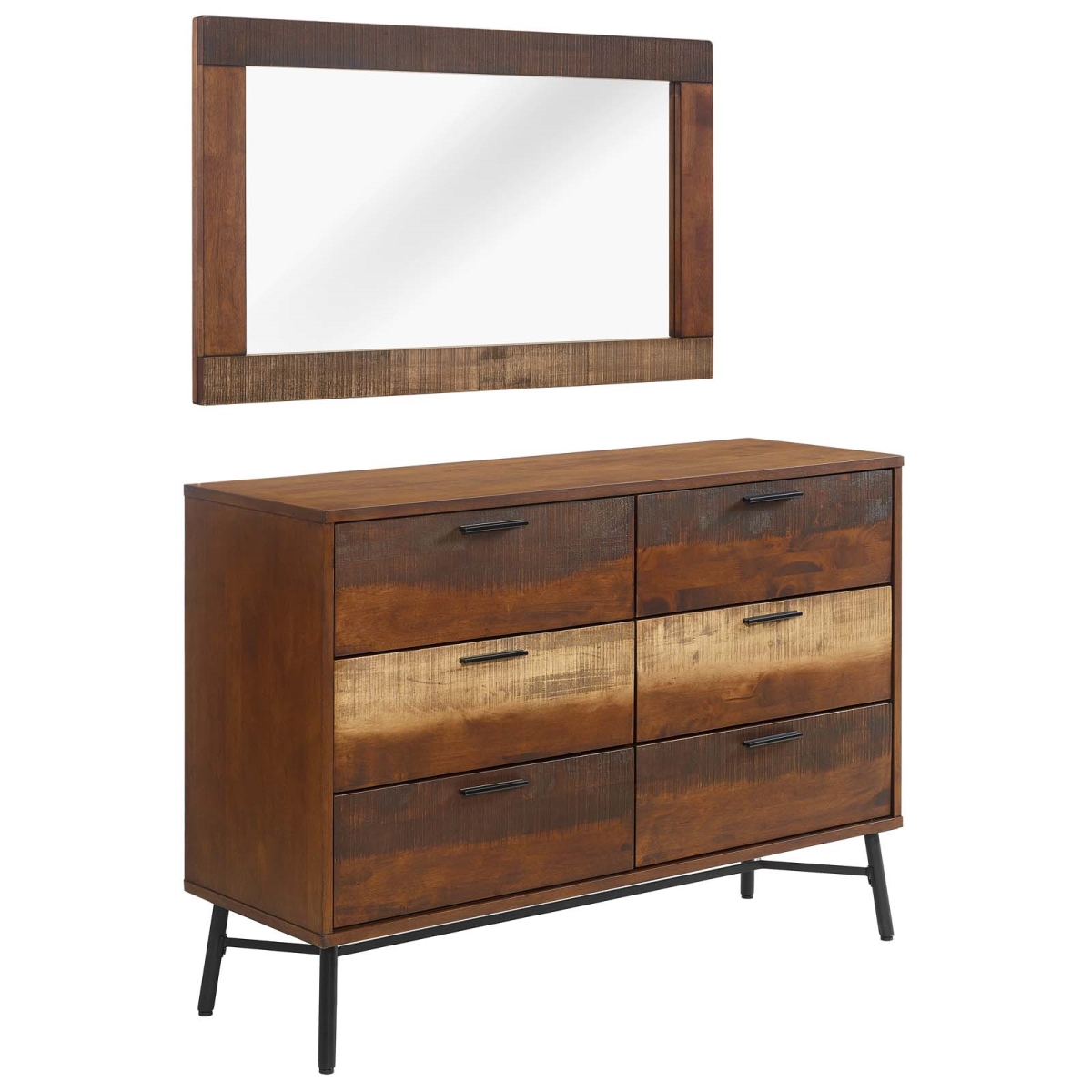 Modway Arwen Rustic Modern Wood Dresser and Mirror 2-Piece Bedroom Set